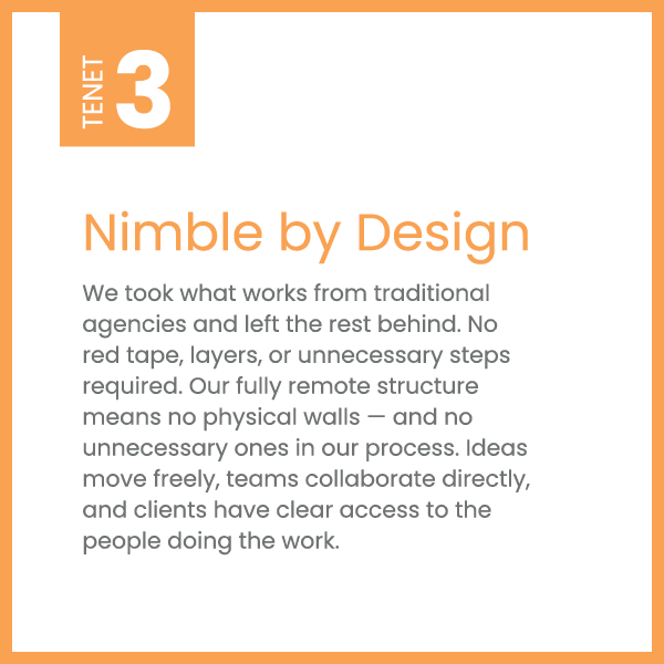 Mindful Kreative designed the Mindful Agency Model to remove the inefficiencies that too often get in the way of great work, changing how organizations experience working with a communications agency.