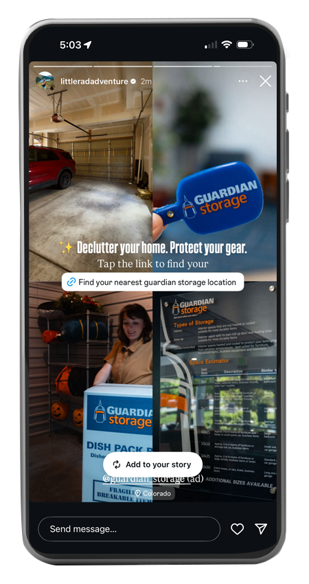 Self-storage is not typically a category associated with influencer marketing or highly shareable content. Yet Guardian Storage recognized an opportunity to reach new audiences by connecting with people who are moving, renovating, downsizing, or reorganizing. Building on the success of a 2024 pilot campaign, the challenge in 2025 was to expand the program’s reach while translating awareness into meaningful engagement, website traffic, and ultimately unit reservations.